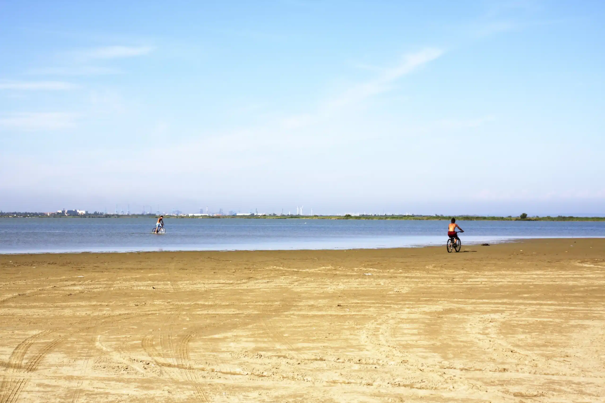 Depuis l’est des Saintes-Maries-de-la-Mer, rejoignez le chemin longeant les plages après le centre de thalassothérapie.